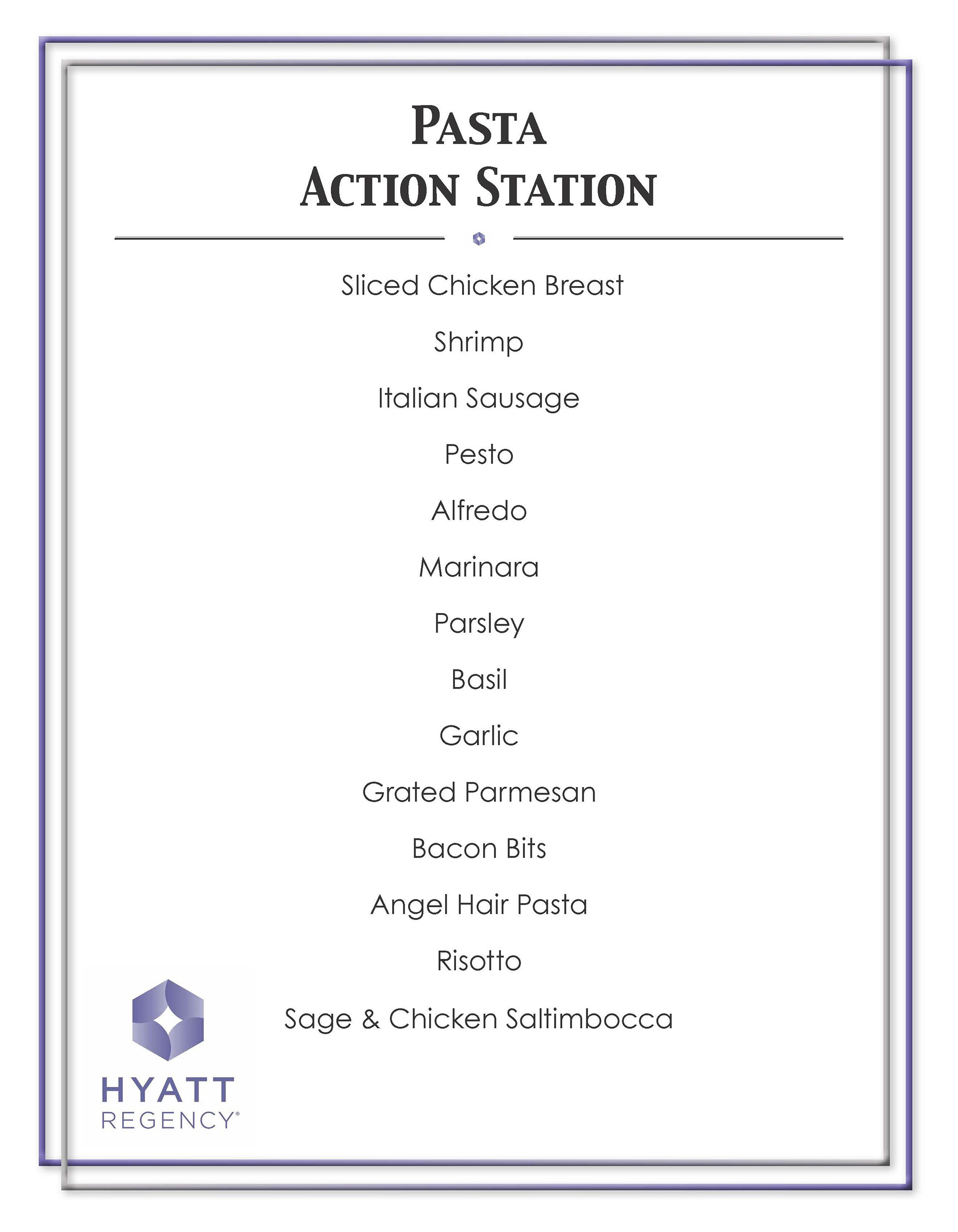 I freelance to the Hyatt Hotel in Iowa City for their Action Station Menus. These are meant to inform residents/event goers on what is available in the meal areas.